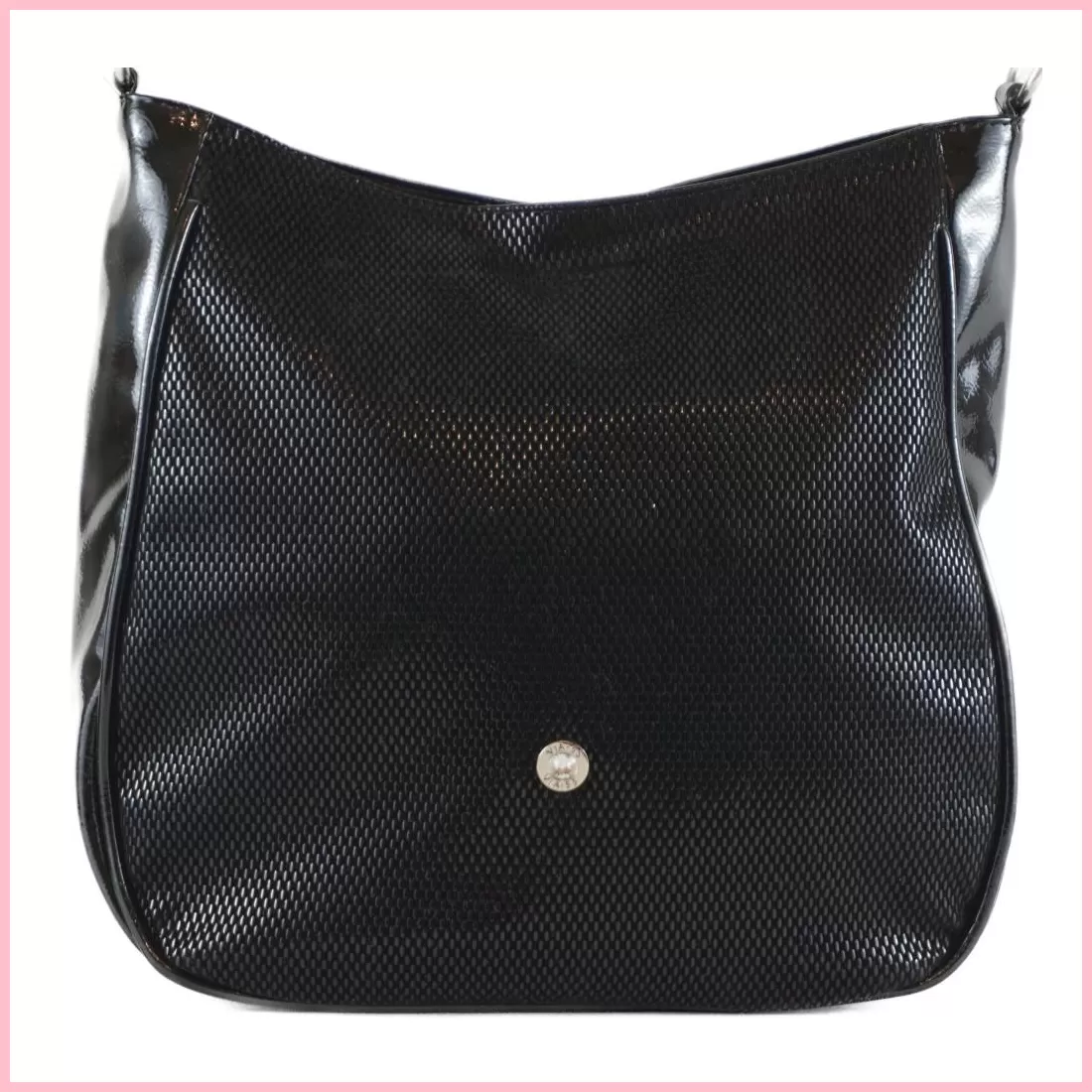 VIA55 női válltáska karikás füllel, rostbőr, fekete rizsminta